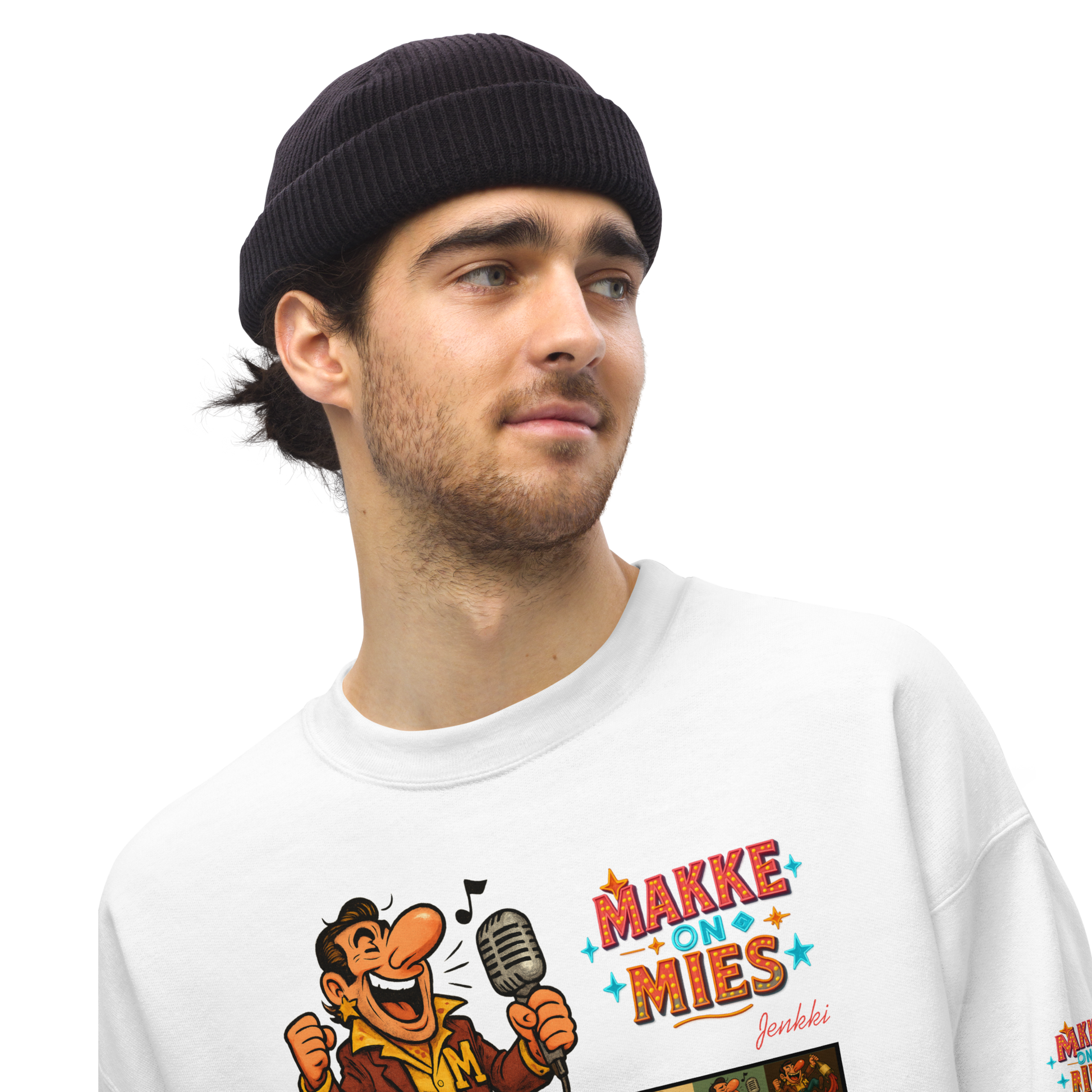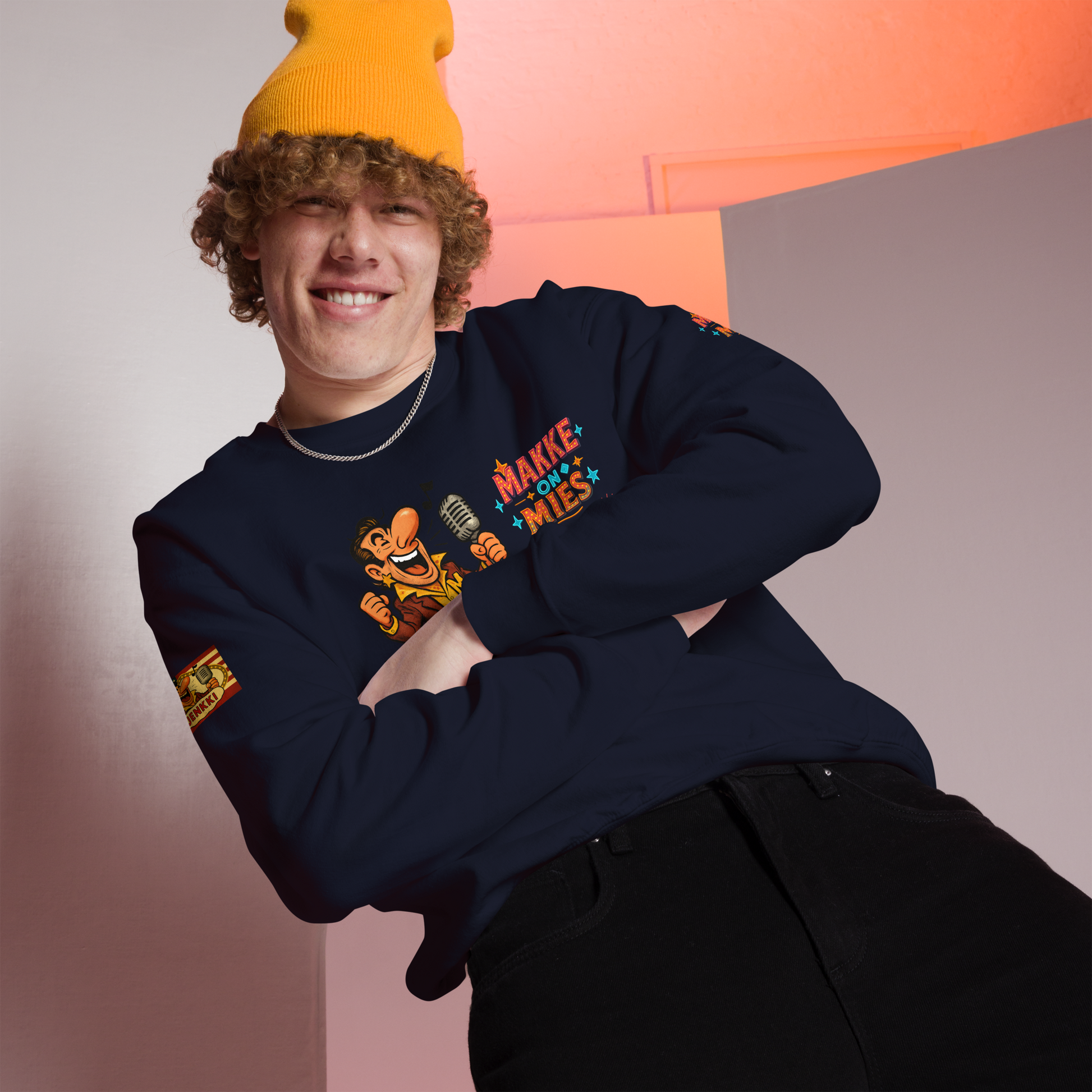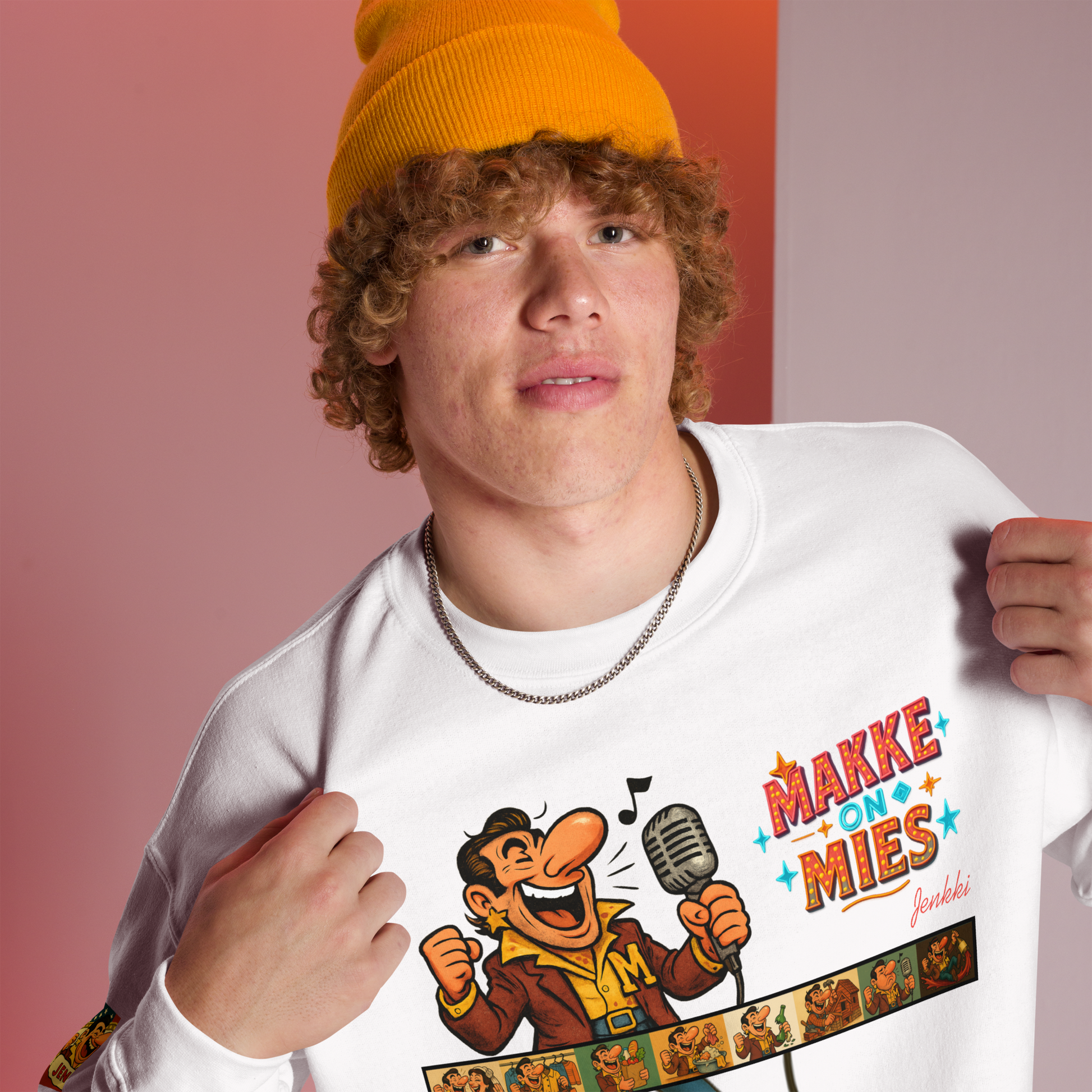 Legendaarinen Makke On Mies -collegepaita! Vankka ja lämmin collegepaita, joka pitää sinut lämpimänä kylminä kuukausina. Esikutistettu, klassisen istuvuusinen villapaita, joka on valmistettu ilmavirtaussuulakepuristetusta langasta pehmeän tuntuman takaamiseksi.